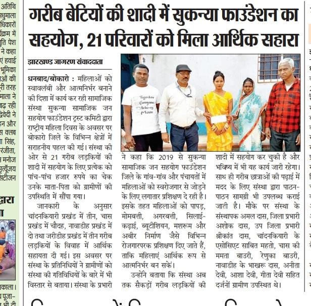 GARIB LADKIYO KE SADI ME SAHYOG KRNA MUKHYA UDDESHYA