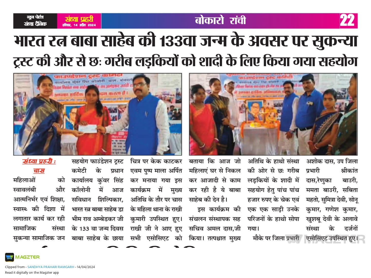 AMBEDKAR JAYANTI PE GARIB LADKIYO KE SADI ME KIYA GAYA SAHYOG