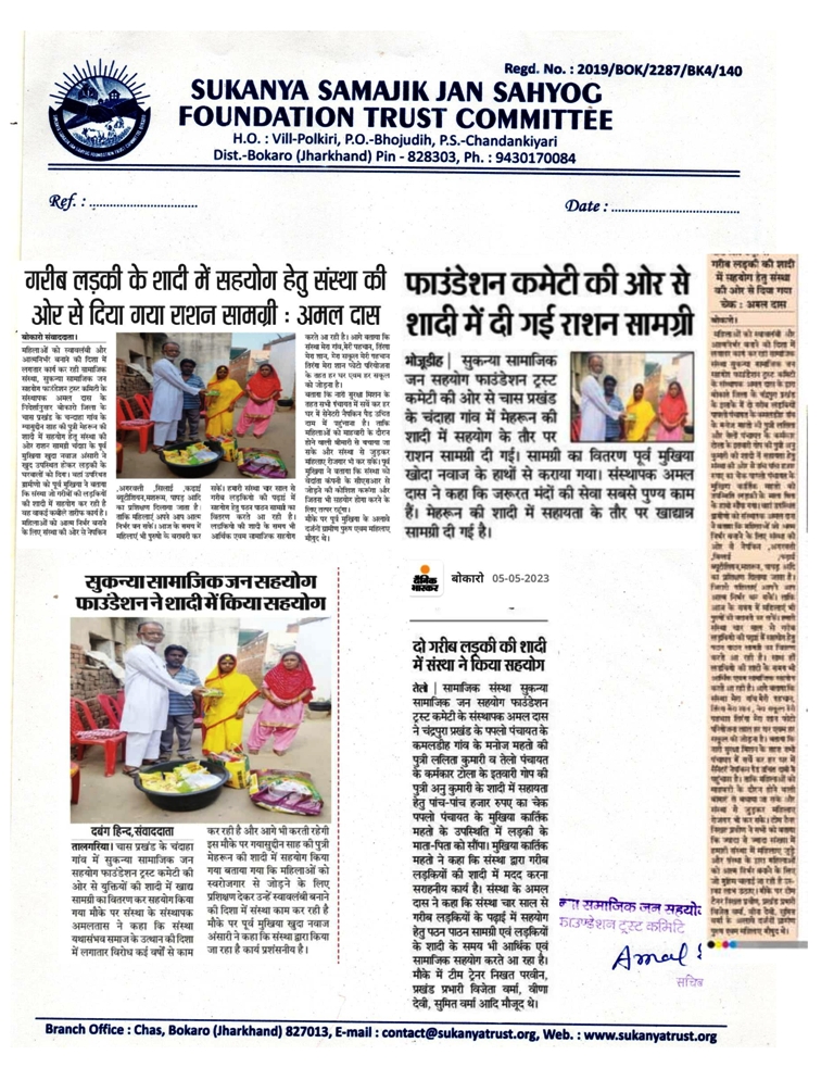 GARIB LADKI KE SADI ME SAHYOG HETU DIYA GAYA RASHAN SAMAGREE 4.5.2023
