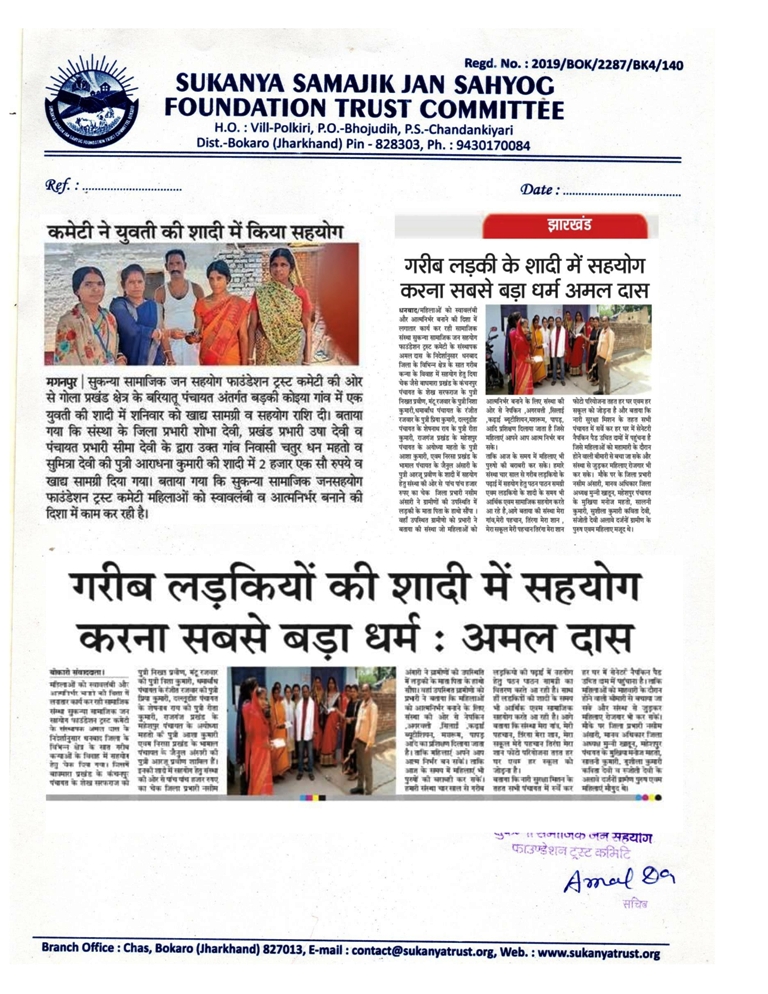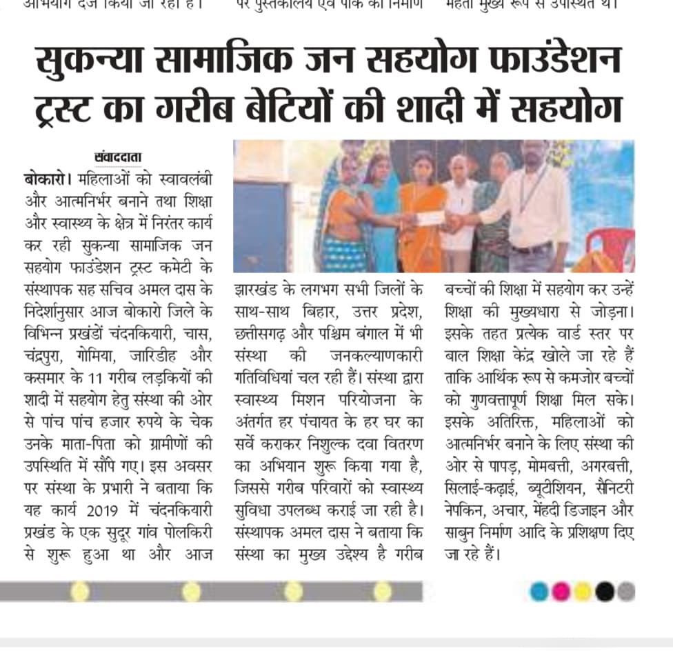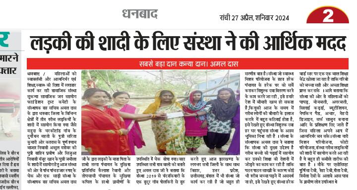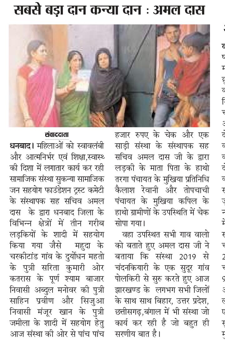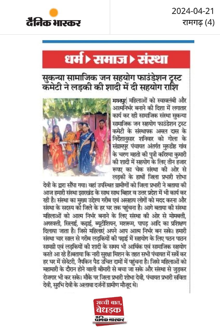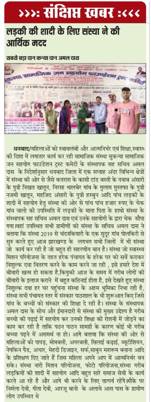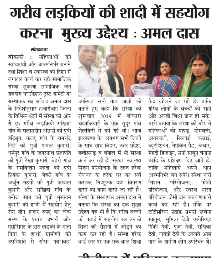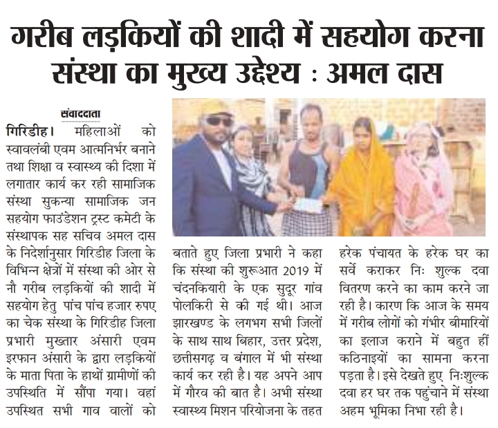 GARIB LADKIYO KE SADI ME SAHYOG KRNA MUKHYA UDDESHYA