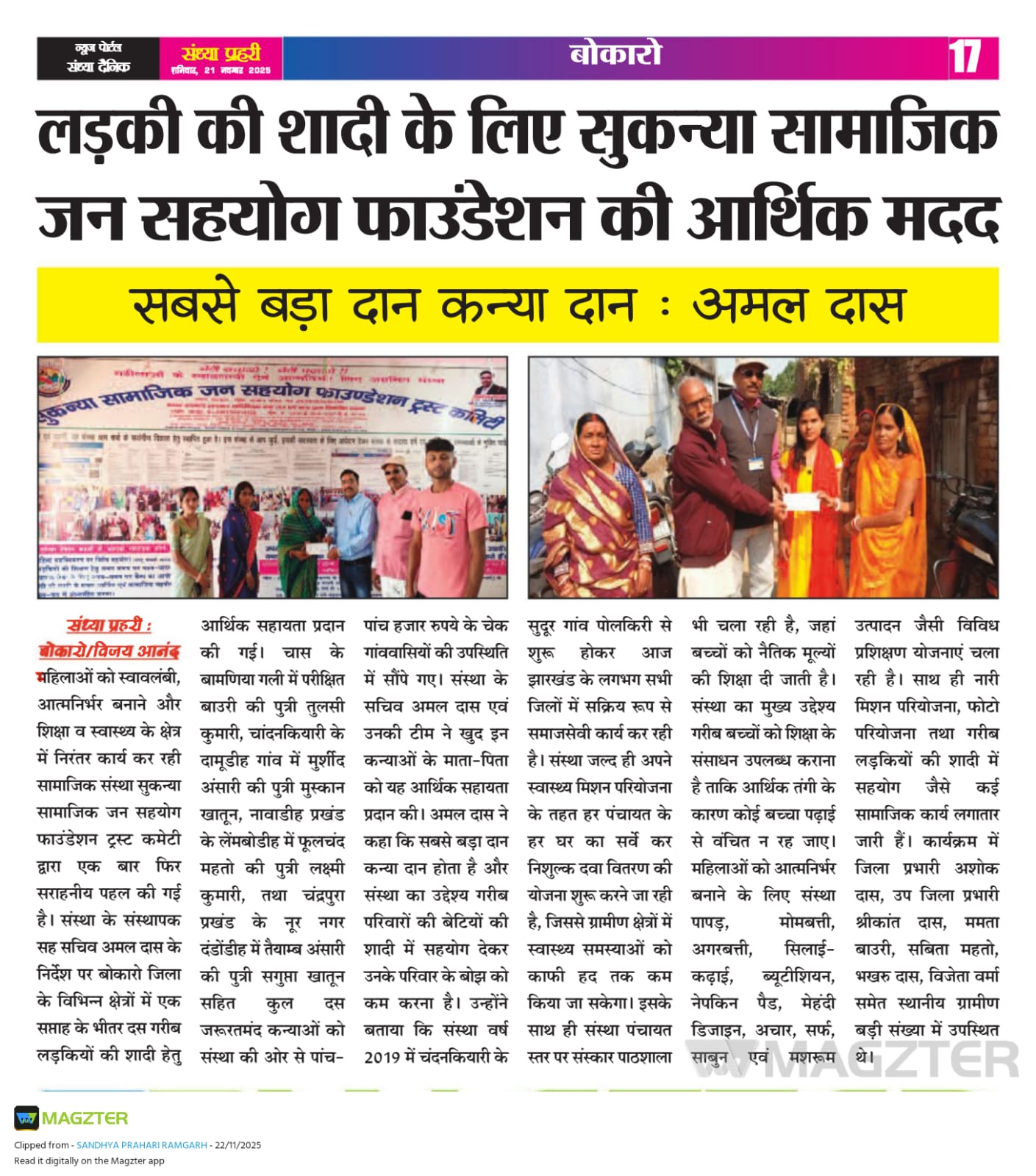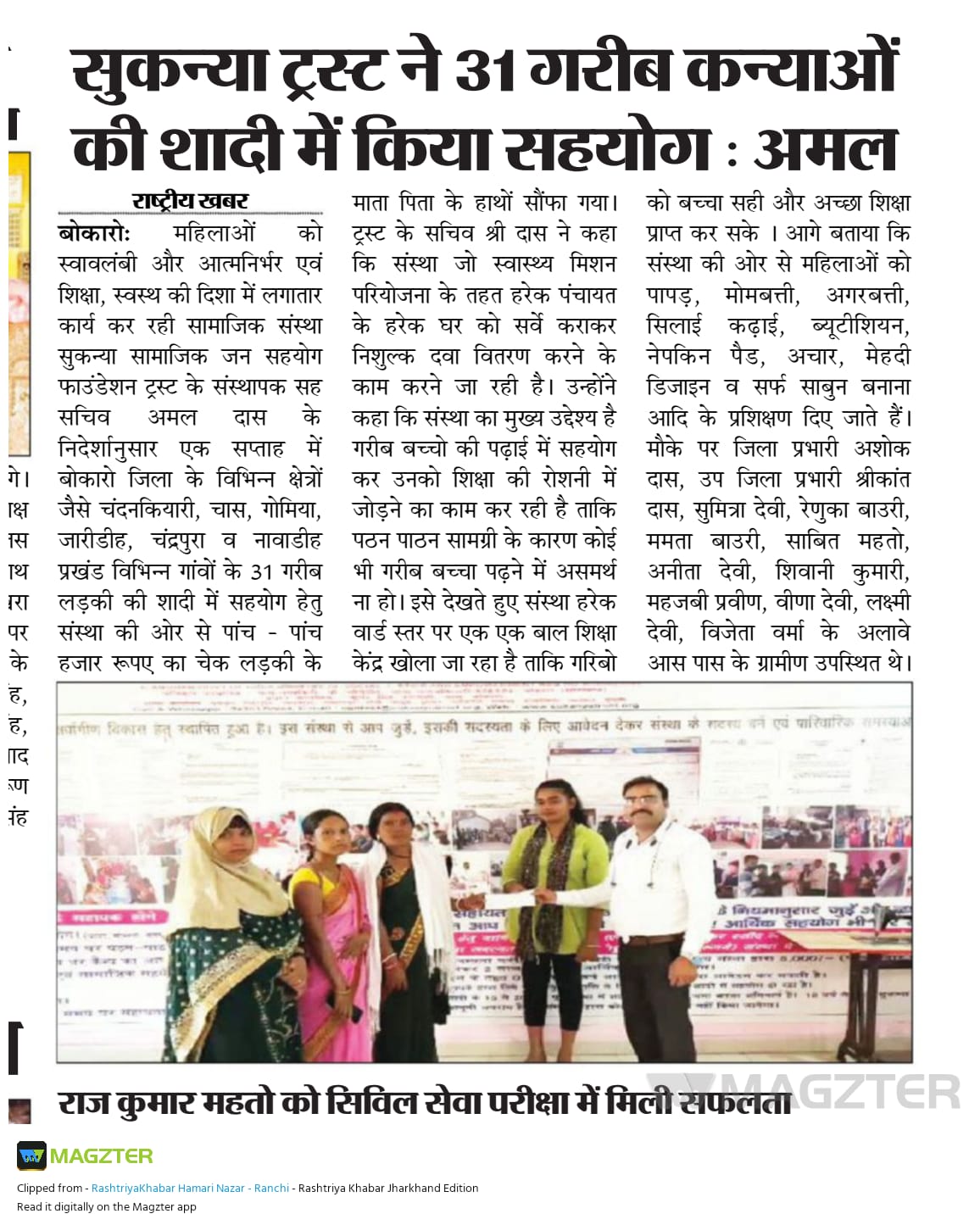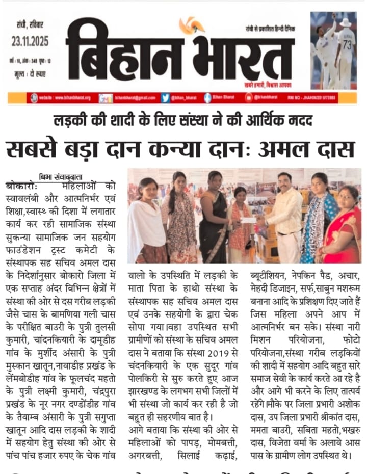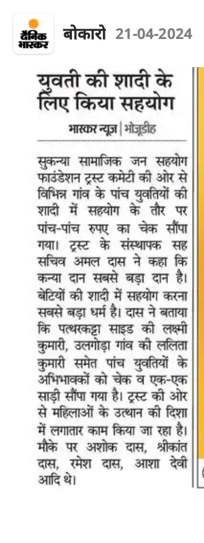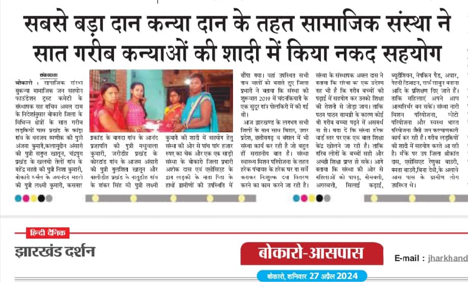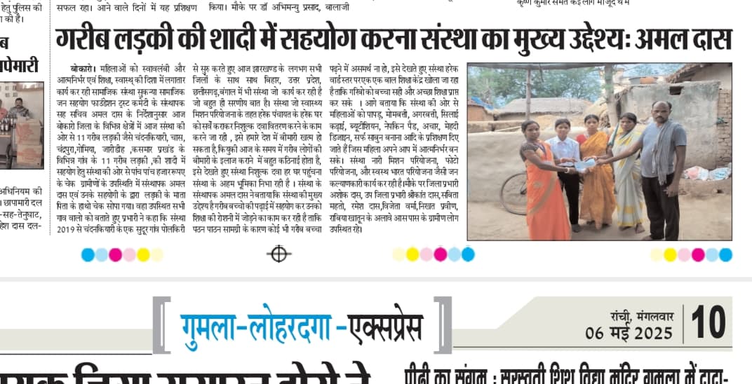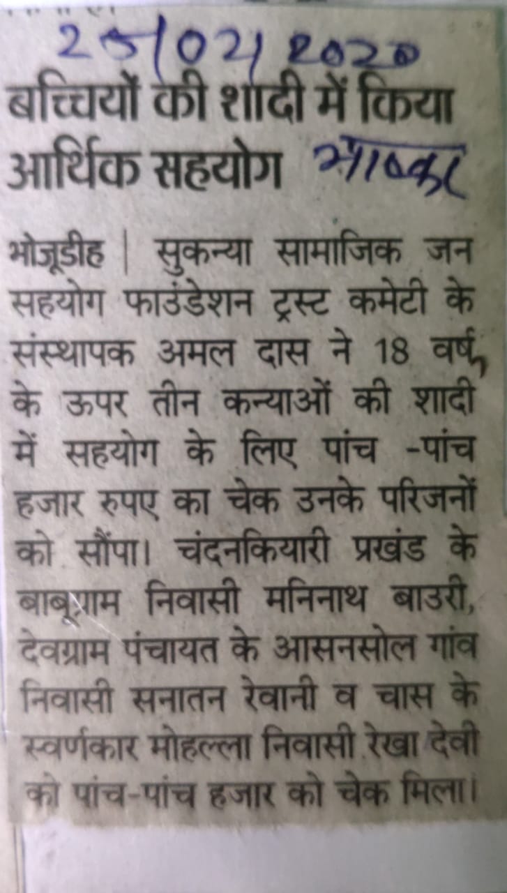 GARIB LADKIYO KE SADI ME SAHYOG KRNA MUKHYA UDDESHYA
