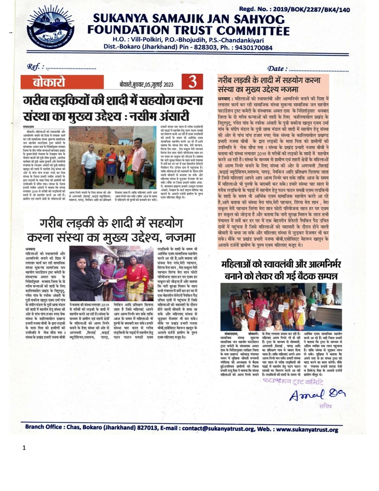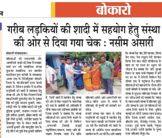 GARIB LADKIYO KE SADI ME SAHYOG KARNA SANSTHA KA MUKHYA UDDESH NASIM ANSARI 6.7.2023