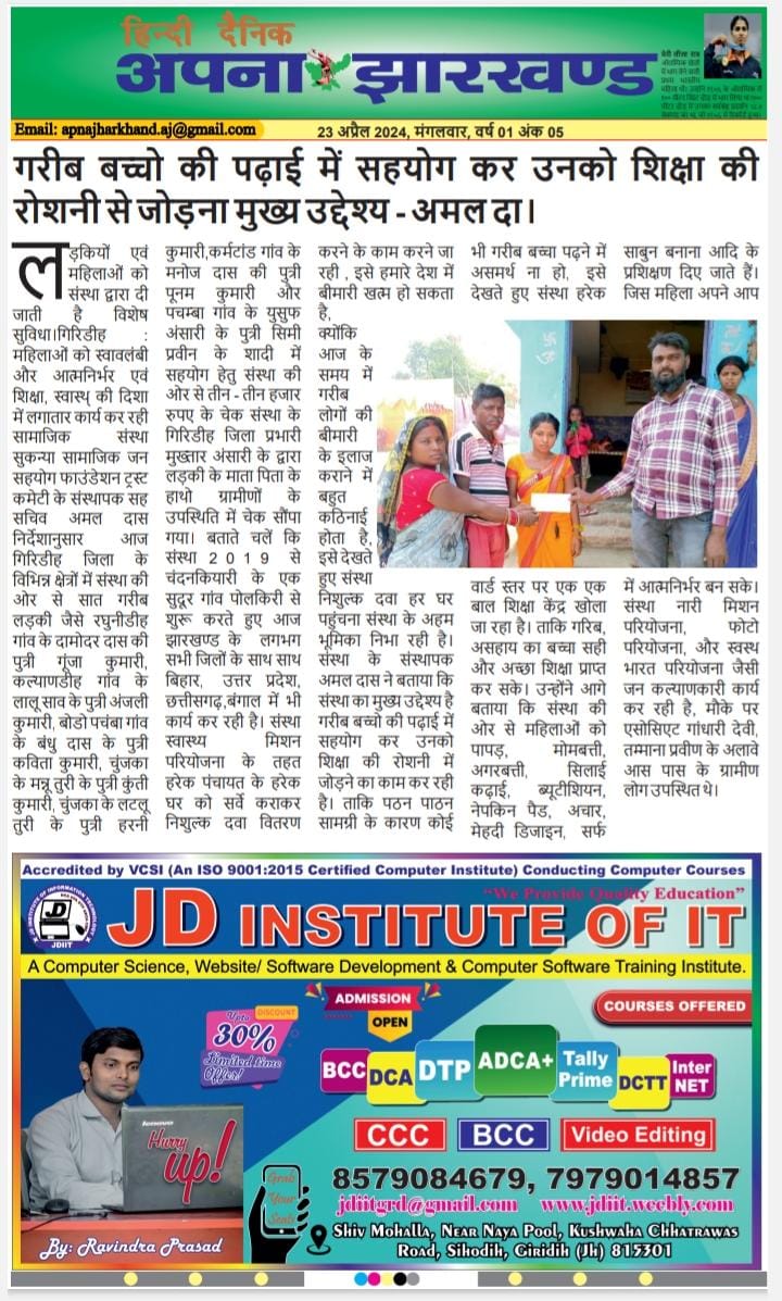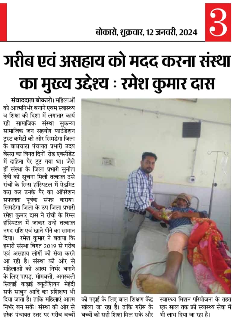 GARIB OR ASAHAY KA MADAD KRNA SANSTHA KA MUKHYA UDESHYA SIMDEGA