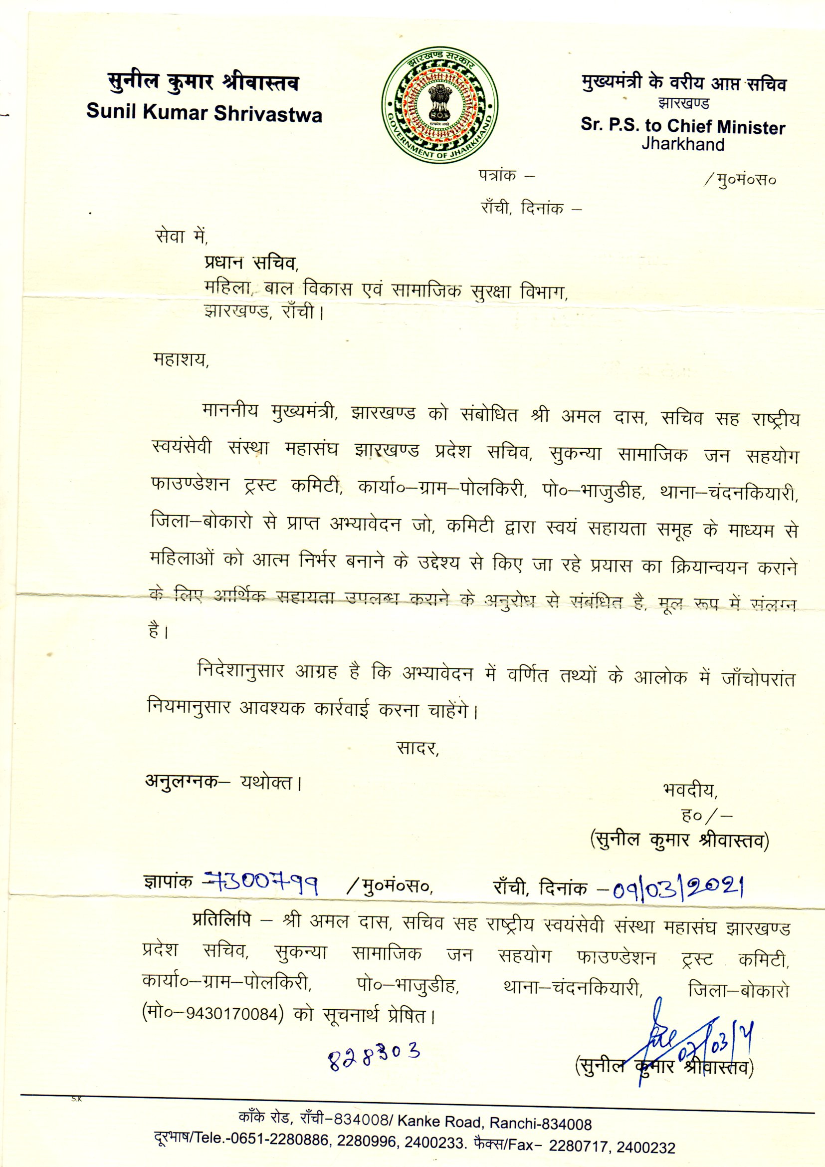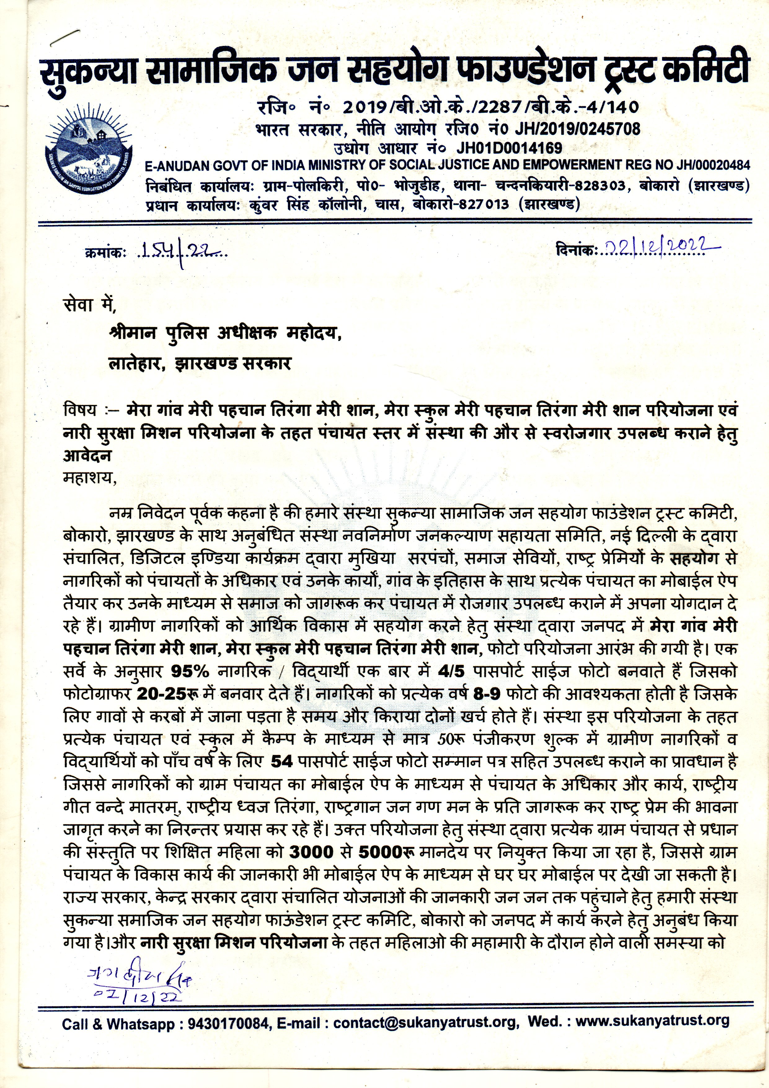 श्रीमान पुलिस अधीक्षक महोदय, लातेहार, झारखण्ड सरकार
