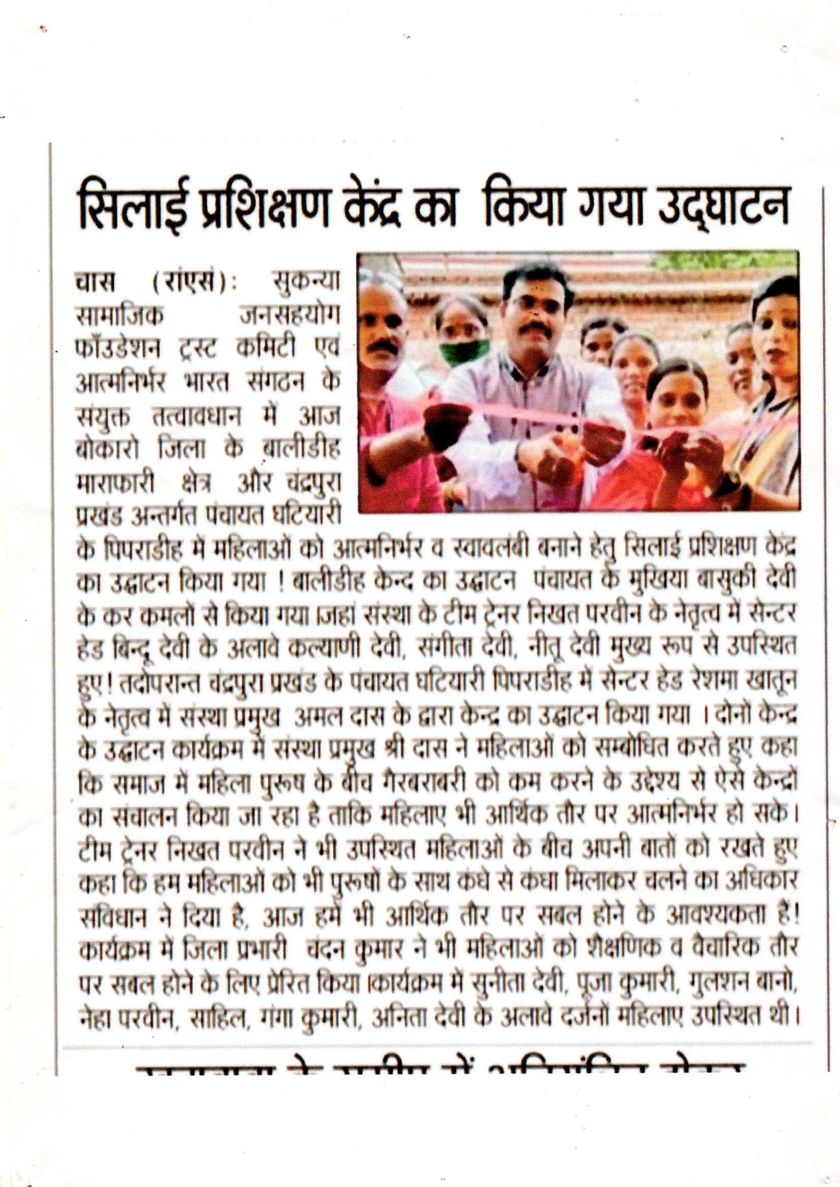 सिलाई प्रशिक्षण केंद्र का किया गया उद्घाटन